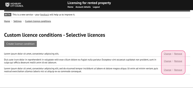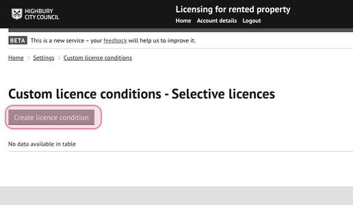 2. Select 'create licence conditions: