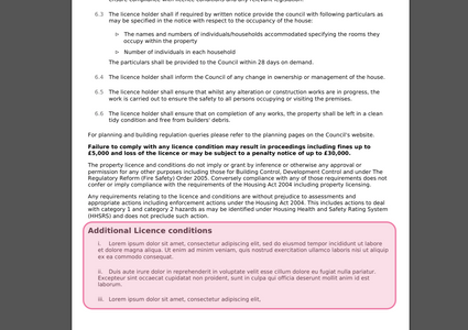 - Insert pre-set custom conditions into licence letters