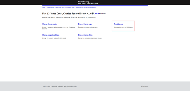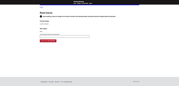 Before confirming the reset, the council officer can see which status the licence case will return to.