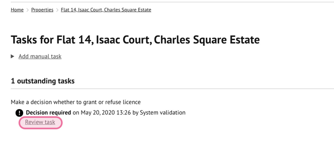 4.1 - Once all processing tasks have been completed, a further task will be generated to make a decision for issuing the licence.