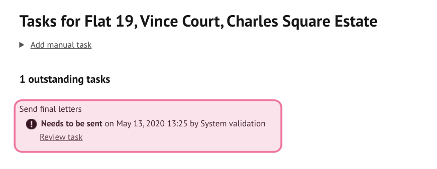 Select ‘review task’ against the relevant outstanding task to view and update the task