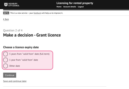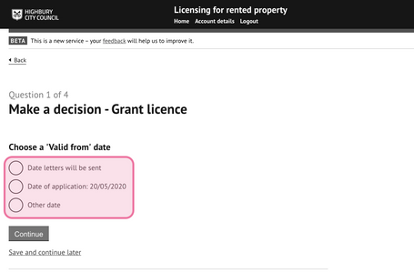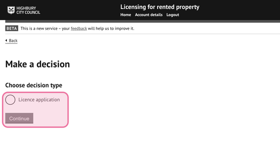 4.5 Select ‘Licence application’ and press ‘continue’