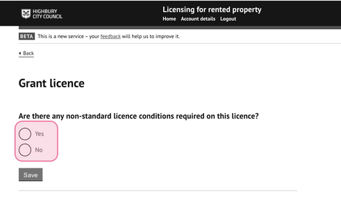 4.6 Select ‘Grant licence’ to issue the licence