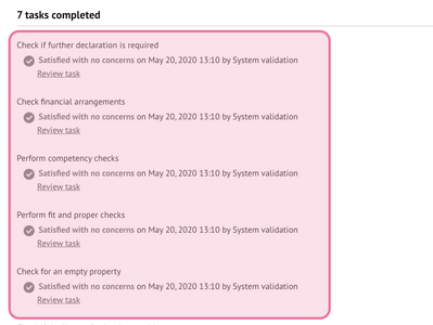By selecting ’review task’ against any listed task, you can view the completed task and add notes if required.