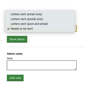 Updating the task to 'Letters sent' will finalise the dates for the letters and send emails to the applicant and print service if selected to do so.