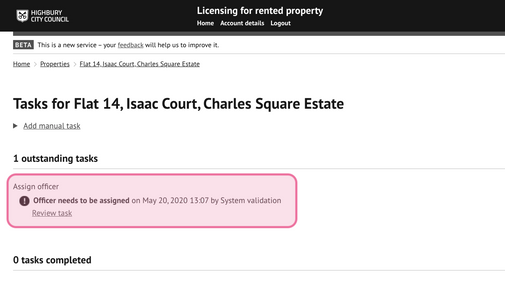 2.2 - Select `Review task` from the Assign officer task