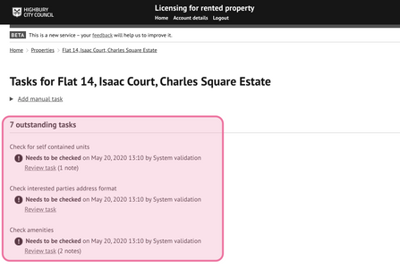 All incomplete tasks need to be completed before a licence can be issued.