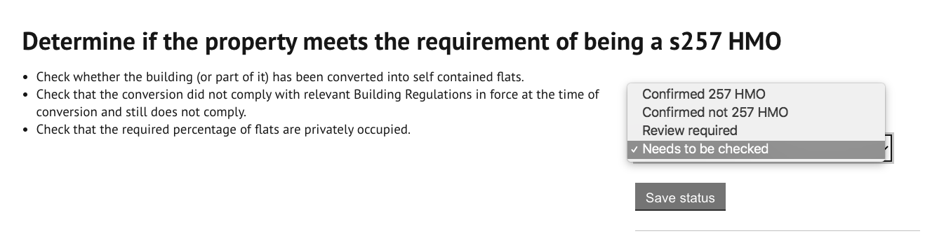 Determine if the property meets the requirement of being a s257 HMO