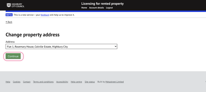 Select the new address from the list and press 'continue':
