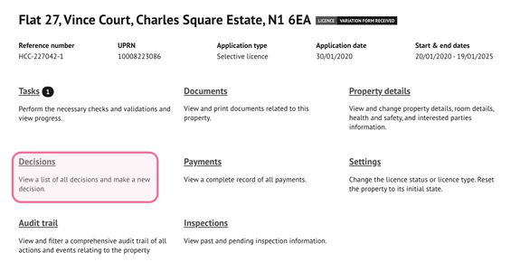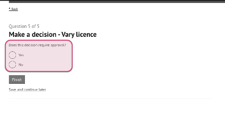 Review and finalise the decision by selecting `finalise decision`. All parts can be changed by selecting `change` against the relevant section