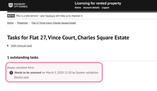 When assessing the task the council user will need to determine if the changes require updates to the information held on the system which can easily be applied via links contained within the task for each section.