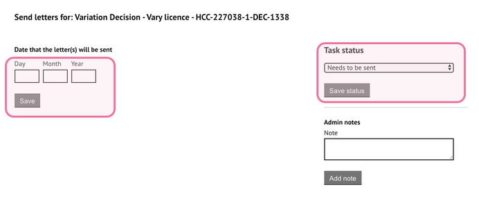 Complete all the task fields and update the task status. If the council officer has identified that changes are required, a further task will be generated to create a formal licence variation decision.