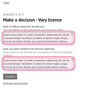 Insert the formal reason for the decision which will appear on the variation notice. You can also include any optional notes for internal use: