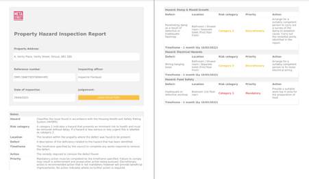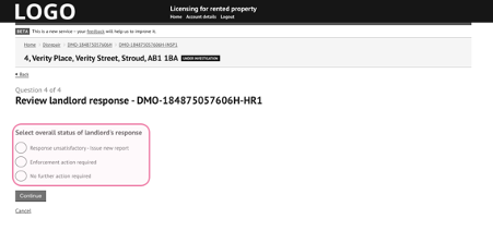 - Enforcement action required – The action taken by the landlord has not been satisfactory and formal action is now needed (this step would be performed using the council’s existing enforcement notice serving process)