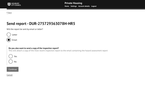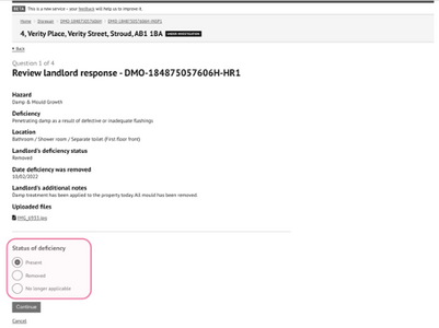 5.1 Using the unique link provided on the email or letter, the landlord can respond to report and provide evidence of the removal of any hazards.