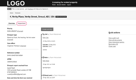 8.3 Further inspections entries for a disrepair record can be created if a new or follow-up inspection of the property is required as part of the disrepair investigation.