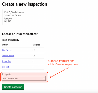 1.3 Select ‘Create inspection’ and assign an inspection officer: