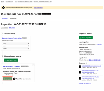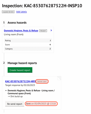 2 - Manage hazard reports - Review and send hazard reports for landlord response. This will only be available once at least one hazard has been fully assessed and rating calculated.