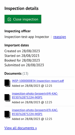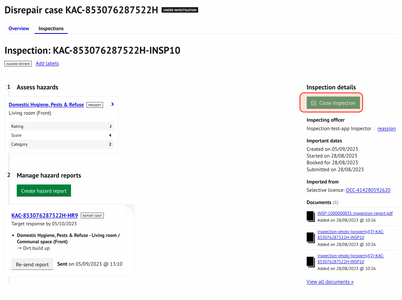 8.1 If no further action is required to be taken for a particular inspection then this can be easily closed by clicking on ‘close inspection’ on the main inspection overview page