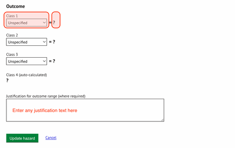 Select Outcome range from the drop-down list and enter any justification text if required. Once selected the score and average will be shown.