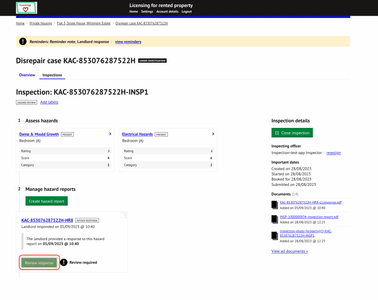 6.2 The status of the hazard report will be updated to `Review landlord response`