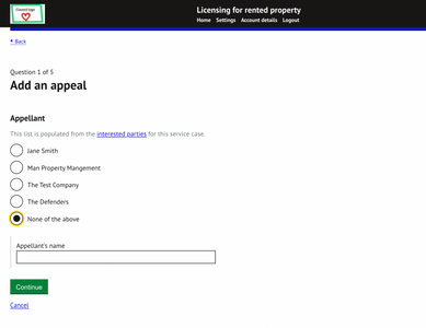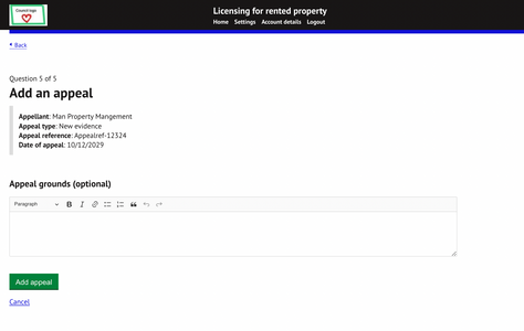 Click the `Add an appeal` button under the 'Appeals' section to add any appeals made: