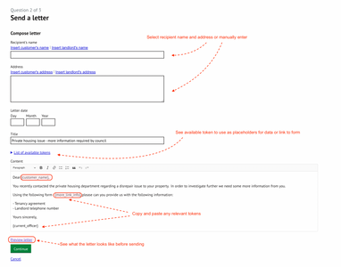 - Insert tokens as placeholders for data that will be populated with the related information once the letter or email is generated.
