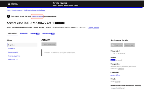 - All newly created or received service cases will be unassigned and will require an officer to be assigned before any action can be recorded.
