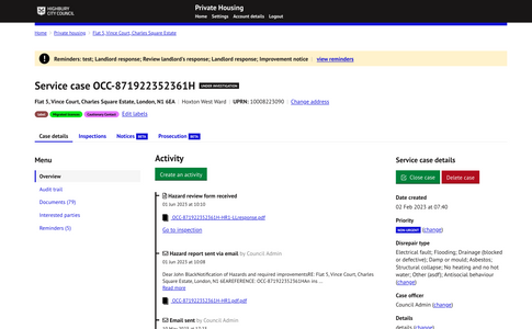 - A council officer creates a service case (back-end office)