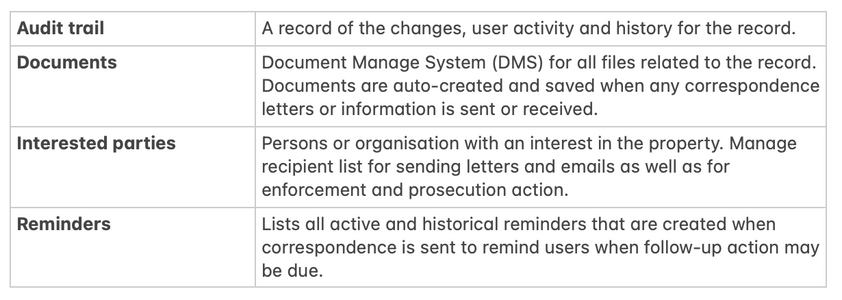 - Notices - 'Enforcement - Create, send and manage notices'