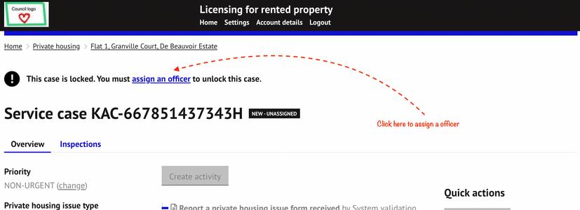 Service cases records created by a council user will be automatically taken to step 3 (assign an officer).