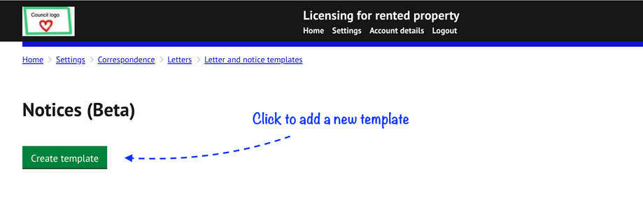 | Template name | This can be an informal name for the notice that will only be visible internally |